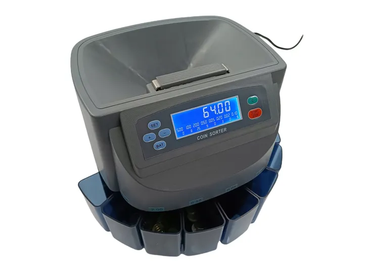 Urządzenie sortuje i liczy bilon o różnych nominałach,Podgląd liczonych monet w czasie rzeczywistym.